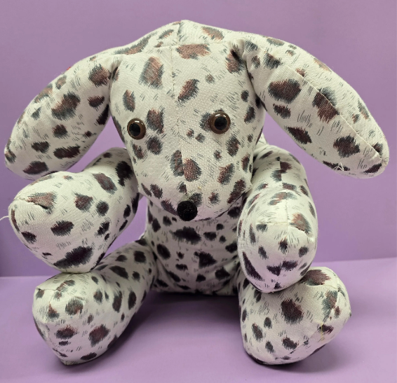 This puppy was created in 2007 as a sample, she still here in the studio, she was sewn on a machine, but can also be assembled by hand stitching… ask to see her! Clothes can easily be designed, then a pattern made and sewn.